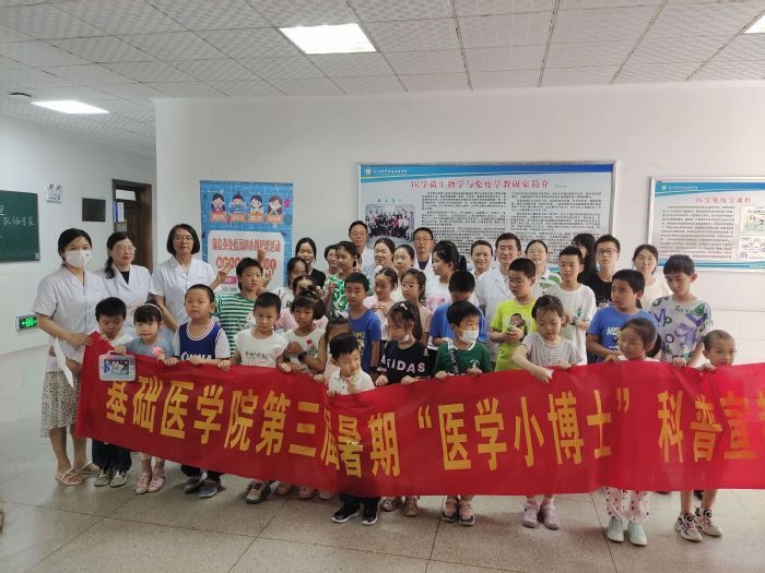 为进一步推动医学免疫学国家级混合式一流课程建设,营造“乐学、向美、明辨、尚行”的课程文化氛围,凸显课程育人价值,打造优质第二课堂,7月4日上午,7790cnm必发集团医学微生物学与免疫学教研室举行蒲公英免疫双科小组成立仪式暨暑期《保护人体的免疫小卫士》主题科普活动。活动由医学微生物学与免疫学教研室主任刘辉组织策划,党支部书记董博翰主持,医学免疫学课程团队教师、教研室党员教师、蒲公英免疫双科小组员工参加活动。