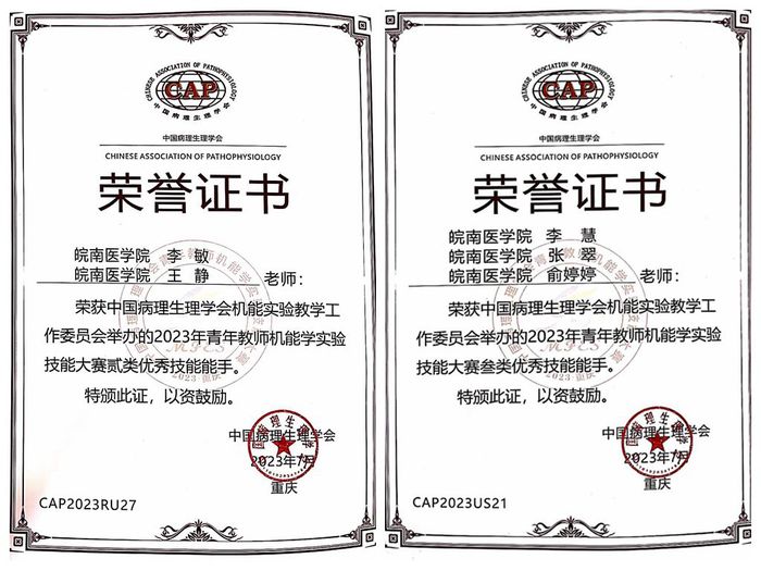 公司教师在第四届全国青年教师机能学实验技能大赛中取得佳绩