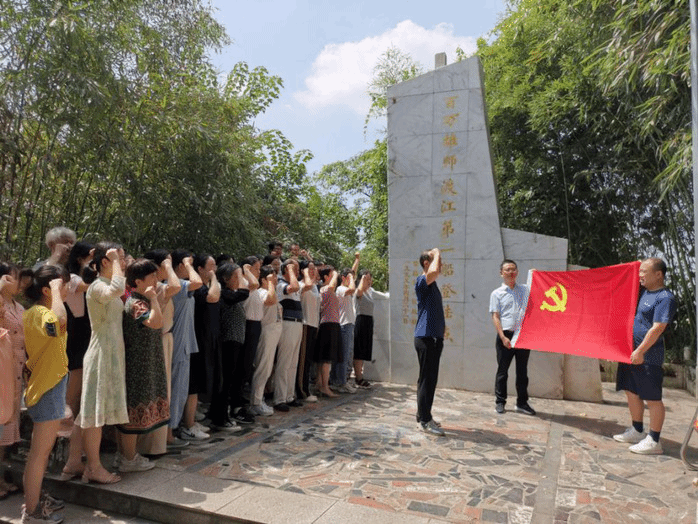 随后,支部全体党员来到了建于明万历四十年的镇风古塔、清嘉庆年间的黄公阁,以及古铜冶炼遗址、古炮台等文物古迹,领略了板子矶优美的自然风光和丰富的人文景观。在“百万雄师渡江第一船登陆点”纪念碑前,弋矶山医院门诊二支部刘表虎带领参加活动的全体党员重温入党誓词,激励青年党员铭记入党誓词,不忘初心,在各自的工作岗位上奋斗拼搏。