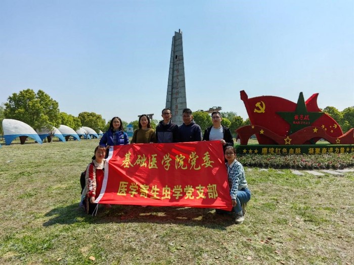 清明节来临之际,医学寄生虫学党支部组织全体党员和教职工于4月8日上午赴繁昌县荻港镇板子矶渡江战役第一登陆点纪念碑参观学习,缅怀革命先烈。