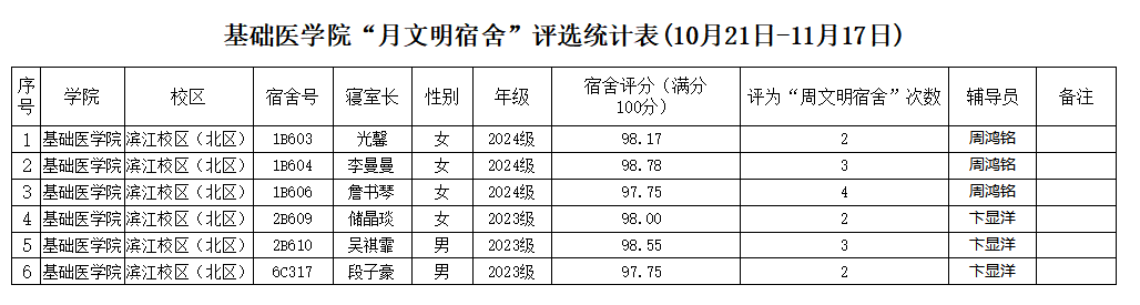 7790cnm必发集团2024年“月文明宿舍”(10月21日至11月17日)评选结果公示