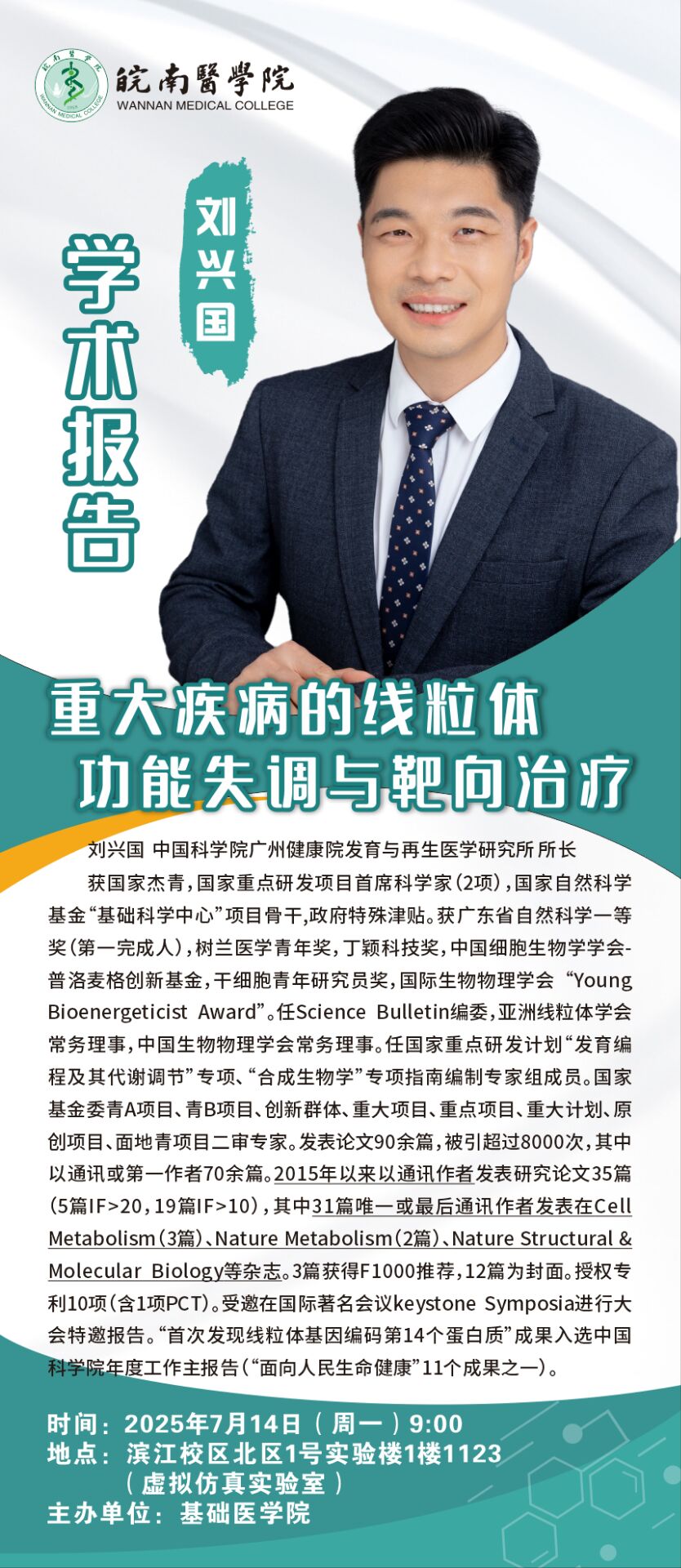 学术报告——重大疾病的线粒体功能失调与靶向治疗