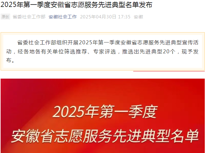 公司“遗路有爱”项目获2025年第一季度安徽省志愿服务先进典型