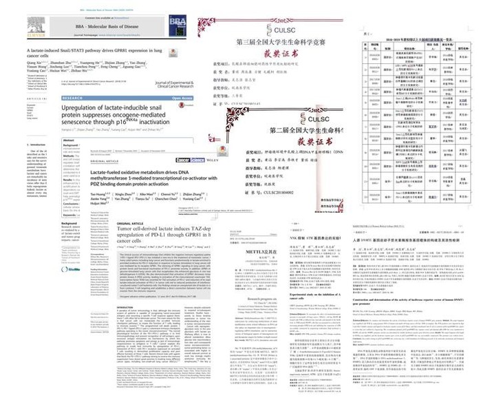 通过四年来的不断摸索,“精准医学”科研兴趣小组取得了喜人的成绩,先后指导本科生获国家级、省级大创项目和校老员工科研资助项目20项,发表高水平科研论文15篇(二类以上11篇,单篇IF最高7.9),2020年前三个季度,以本科生为第一作者发表高水平SCI文章3篇:黄滔(临床医公司)、周兴路(检验公司,并列第一)等,Cancer Science (2020),IF=4.966;谢强(药公司)、朱站站(药公司, 并列第一)等,BBA- Molecular basis of disease (2020),IF=4.352;董琪(临床医公司)、周辰康(检验公司,并列第一等,Cell Communication and Signaling (2020),IF=4.344)。
