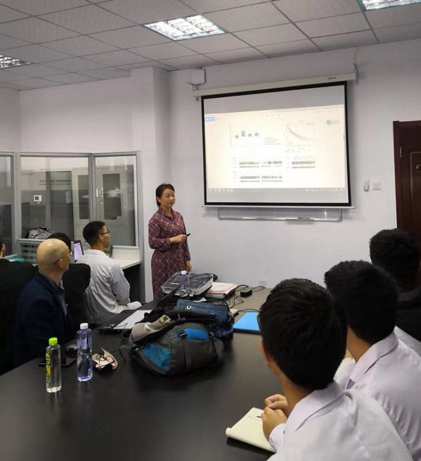 王雪融教授围绕《有关治疗糖尿病药物格列本脲对癌症的治疗》专题,从相关分子机制、研究进展、阶段成果等方面,向与会师生介绍了其研究课题,并就实验方案设计以及一些基本的实验技术与大家进行了深入探讨。随后,研究室科研小组成员黄滔和谢强进行了课题汇报展示。本次的学术交流促进了公司对肿瘤治疗新疗法的认识与学习,有助于双方在肿瘤研究方面共同学习与进步。