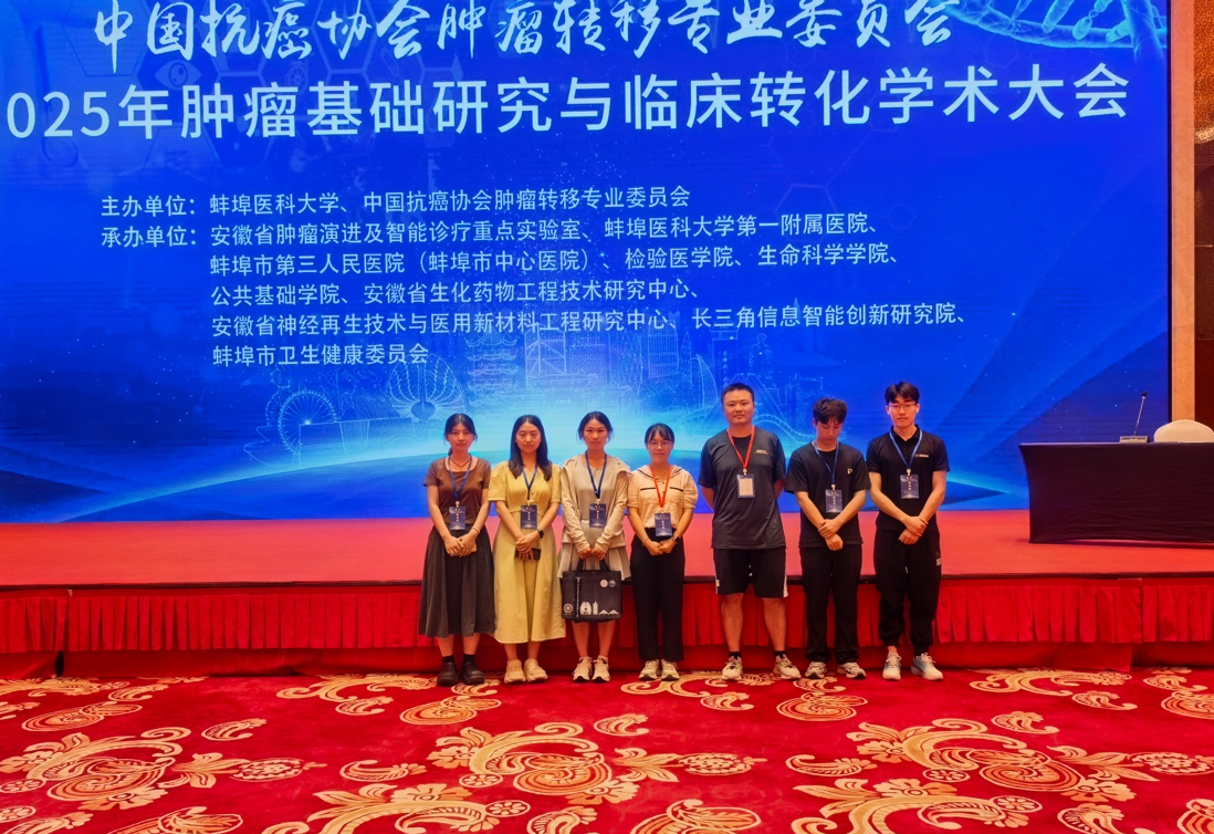 近日,由7790cnm必发集团和中国抗癌协会肿瘤转移专业委员会联合主办的2025年肿瘤基础研究与临床转化学术大会在蚌埠市召开,大会吸引了来自全国肿瘤研究领域的众多专家学者、临床医生及科研人员齐聚一堂,交流探讨学术最前沿知识。公司组织相关教研室师生一行7人参加大会。